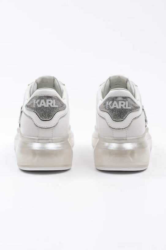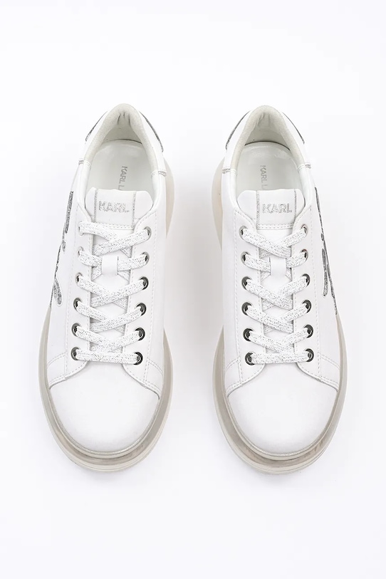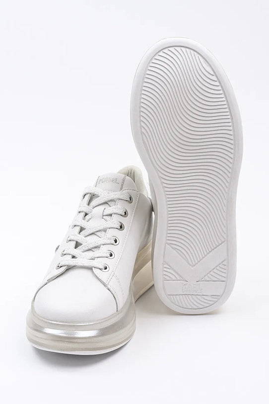 Кроссовки из коллекции Karl Lagerfeld. Изготовлены из кожи наппа и имеют текстильную подкладку, которая обеспечивает комфорт и позволяет легко содержать их в чистоте. - Круглый, жёсткий носок. - Текстильная внутренняя часть комфортна для ног и облегчает содержание обуви в чистоте. - Удобная стелька. - Усиленный задник обеспечивает отличную поддержку лодыжки и пятки. - Контрастный задник. - 3D логотип. - Платформенная модель. - Прозрачная резиновая подошва с видимыми пузырьками. - Резиновая подошва прочная и устойчивая к повреждениям. - Классическая шнуровка позволяет индивидуально подогнать обувь по ноге.