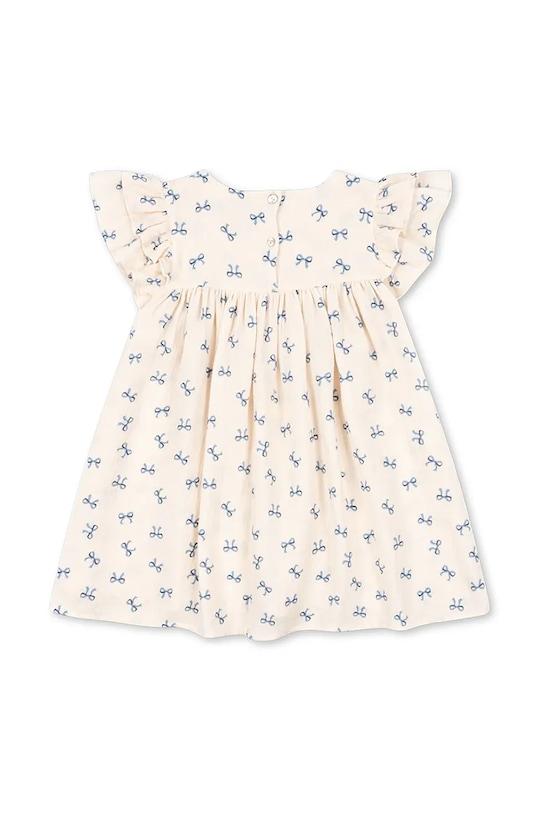 Платье из коллекции Konges Sløjd. Расклешенный фасон из хлопковой ткани. Этот продукт изготовлен из сертифицированного органического хлопка, выращенного и собранного с растений, не содержащих ГМО, без использования удобрений и пестицидов. Процесс производства органического хлопка более экологичен, и изделия из него также более экологичны. Наш хлопок сертифицирован по стандарту GOTS (Глобальный стандарт органического текстиля), что гарантирует его производство с заботой об окружающей среде и соблюдением прав работников. - Расклешенный крой. - Модель с декоративными оборками. - Круглый вырез. - Застегивается на пуговицы сзади.
