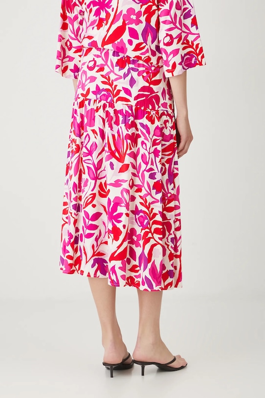 Юбка из коллекции «Медицина». Расклешенный фасон из узорчатой ткани. - Материал с сертификатом OEKO-TEX Standard 100 гарантирует, что текстильные изделия, на которых он нанесен, не содержат вредных и потенциально опасных для человека и окружающей среды веществ. - Расклешенный крой. - Повышенное состояние. - Эластичный пояс со шнурками. - Модель с декоративной оборкой. - Декоративные оборки. - Узорчатая ткань. - Узор с растительным мотивом. - Модель длины миди. - Ширина талии (до растягивания): 34,5 см. - Ширина талии (после растяжения): 49 см. - Длина: 84 см. - Размеры указаны для размера: S.