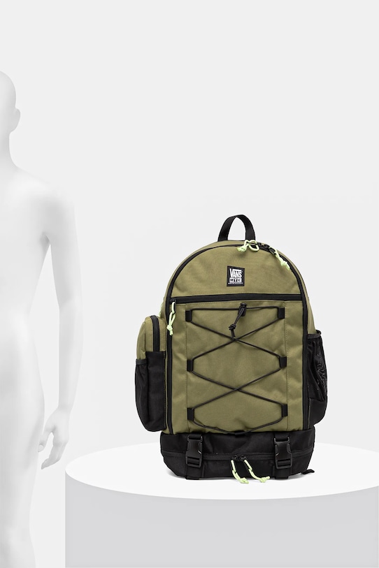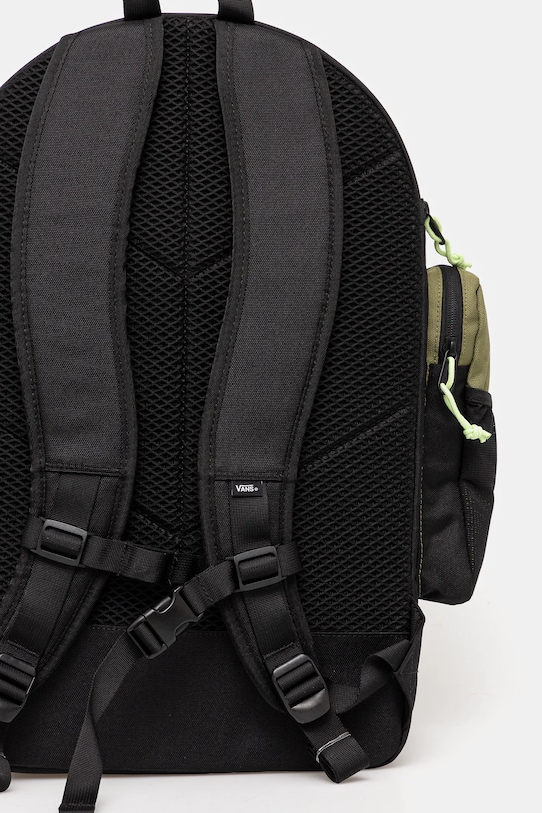 Рюкзак из коллекции Vans. Изготовлен из текстильного материала. Кордура — чрезвычайно прочная, но лёгкая ткань. Её волокна обладают высокой устойчивостью к истиранию, разрывам и неблагоприятным погодным условиям. Она проста в уходе и устойчива к пятнам. - Однокамерная модель. - Дополнительный карман для обуви. - Боковые карманы для бутылок. - Вмещает формат А4. - Застежка-молния. - Рукоятка. - Регулируемая длина ремешка. - Встроенный регулируемый нагрудный ремень стабилизирует рюкзак и обеспечивает правильное распределение веса. - Глубина: 17 см. - Высота: 50 см. - Ширина у основания: 30 см.
