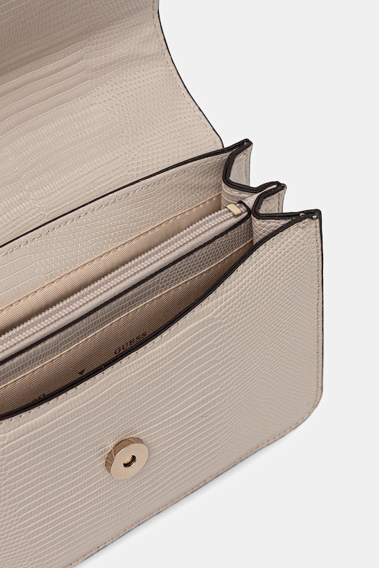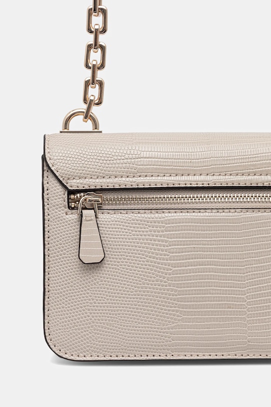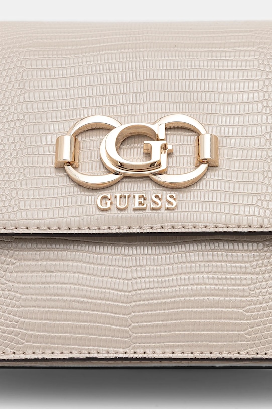 Небольшая сумочка из коллекции Guess. Модель на молнии, выполнена из экокожи. - Клапан застегивается на магнит. - Имеет три отделения, одно из которых застегивается на молнию. - Имеет внутренний карман на молнии и отделения для карт. - Карман на молнии на задней стороне позволяет безопасно хранить телефон или другие мелкие предметы. - Не подходит для формата А4. - Несъемный, регулируемый ремешок. - Входящий в комплект тканевый чехол защищает изделие от пыли. - Минимальная длина ремешка: 102 см. - Максимальная длина ремня: 114 см. - Глубина: 7 см. - Высота: 16 см. - Ширина у основания: 22 см.