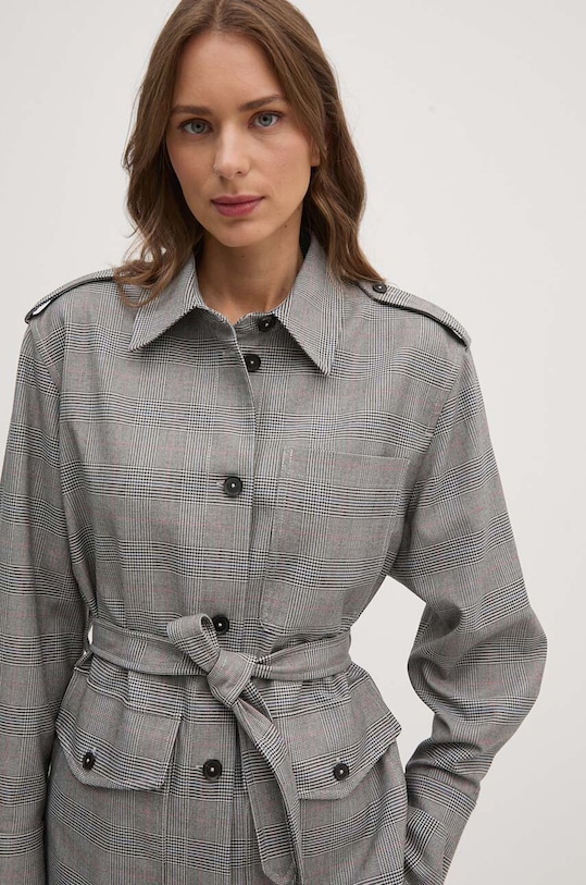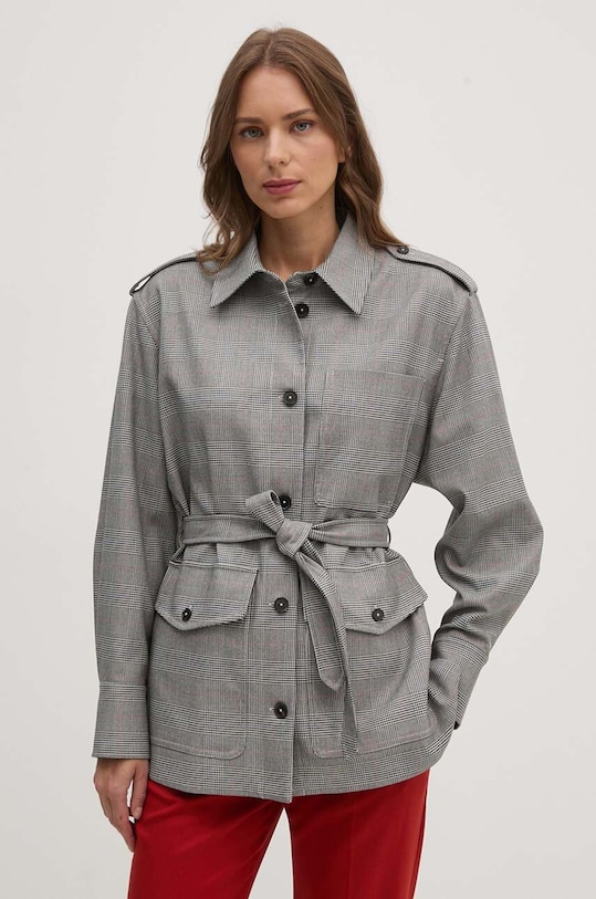 Эта куртка из коллекции Tommy Hilfiger. Модель без подкладки выполнена из ткани с узором. Содержание полиэстера делает ткань менее мнущейся. - Свободный крой, обеспечивающий полную свободу движений. - Крой рукава со спущенной линией плеча не ограничивает подвижность. - Удобная застежка на кнопки позволяет легко надевать и снимать. - Два боковых кармана с пуговицами и застежкой-молнией. - Накладной карман на груди. - Неутепленная модель с подкладкой. - Текстильный ремешок в комплекте. - Длина рукава (от воротника): 58 см. - Длина: 71 см. - Ширина под мышками: 57 см. - Размеры указаны для размера: 36.