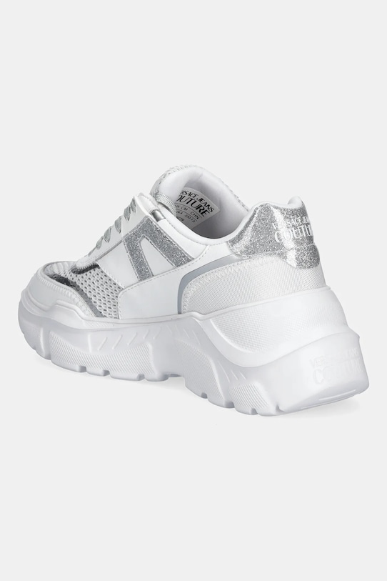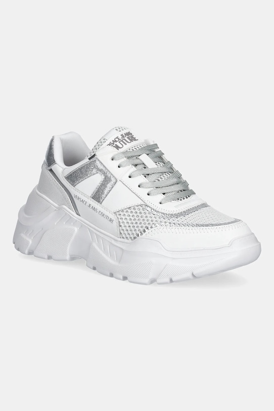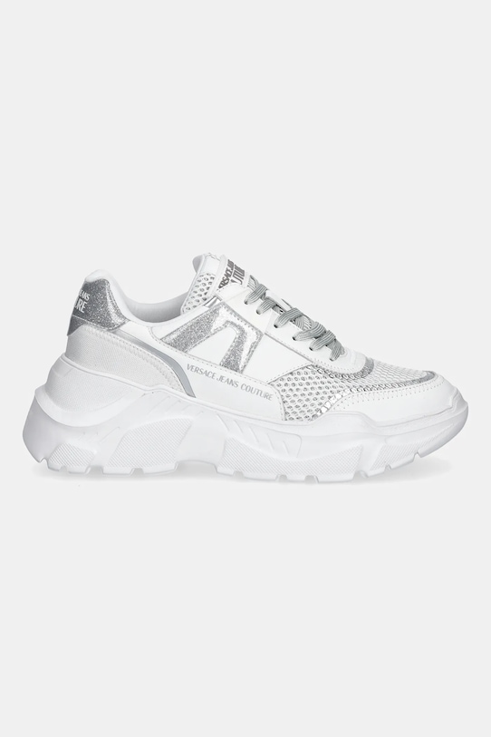 Кроссовки из коллекции Versace Jeans Couture, изготовленные из комбинации текстиля, синтетического материала и экокожи, оснащены кожаной стелькой, которая благодаря естественным порам предотвращает натирание, потертости и появление неприятного запаха. - Круглый, слегка утолщенный носок. - Платформенная модель. - Усиленный задник с мягким наполнителем защищает пятку от истирания. - Резиновая рифленая подошва долговечна и обеспечивает хорошее сцепление. - Классическая шнуровка позволяет индивидуально подогнать обувь по ноге. - Высота платформы: 6,5 см. - Длина вставки: 23,5 см. - Размеры указаны для размера: 37.