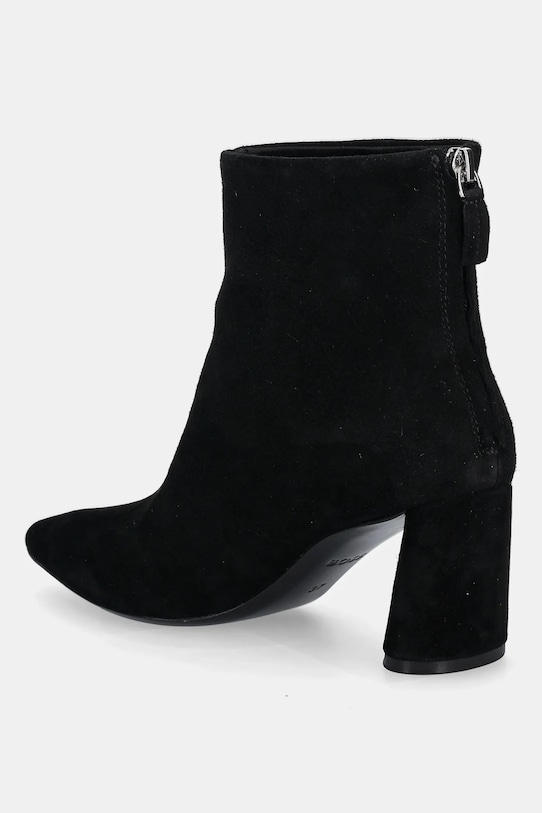 Эти ботинки из коллекции BOSS изготовлены из замши. Они оснащены усиленным задником, который стабилизирует пятку и надежно фиксирует ногу в обуви, предотвращая ее выскальзывание во время движения. - Заостренный, жесткий нос. - Жесткий задник стабилизирует пятку и удерживает ногу в обуви, не давая ей выскальзывать во время движения. - Кожаная подошва. - Модель с блочным каблуком. - Контурная стелька поддерживает свод стопы и обеспечивает длительный комфорт. - Удобная застежка-молния позволяет легко надевать и снимать. - Высота каблука: 7,5 см. - Длина вставки: 23,5 см. - Размеры указаны для размера: 37.