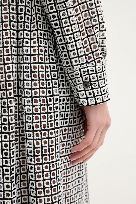 Это платье из коллекции Liviana Conti выполнено из ткани с рисунком. Полиэстер обеспечивает повышенную устойчивость к сминанию. - Расклешенный крой. - Застежка на короткие пуговицы обеспечивает эффективную вентиляцию и легкость надевания и снимания. - Длинный рукав. - Манжеты на пуговицах. - Длина: 123 см. - Ширина под мышками: 42 см. - Размеры указаны для размера: 36.