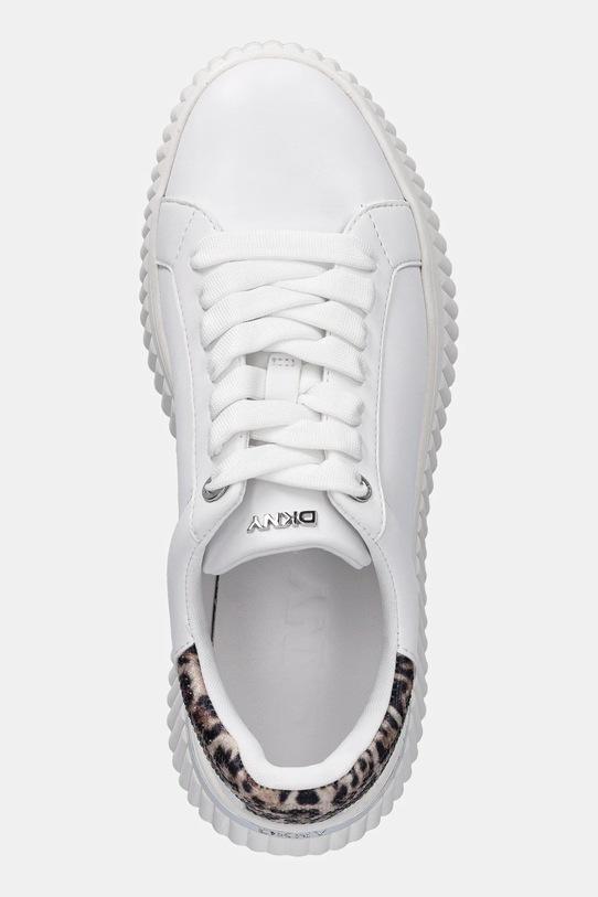 Эти кроссовки Dkny из искусственной кожи. Лёгкие и удобные, идеально подходят для повседневной носки. - Плоские шнурки устраняют давление на подъем стопы, обеспечивая хорошую посадку и комфорт. - Круглый, слегка утолщенный носок. - Жесткий задник стабилизирует пятку и удерживает ногу в обуви, не давая ей выскальзывать во время движения. - Текстильная внутренняя часть комфортна для ног и облегчает содержание обуви в чистоте. - Стелька из пеноматериала амортизирует стопу и обеспечивает комфорт. - Платформенная модель. - Высота платформы: 5 см. - Длина вставки: 23,5 см. - Размеры указаны для размера: 38.