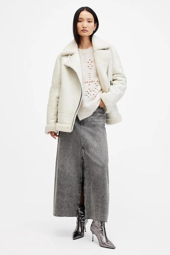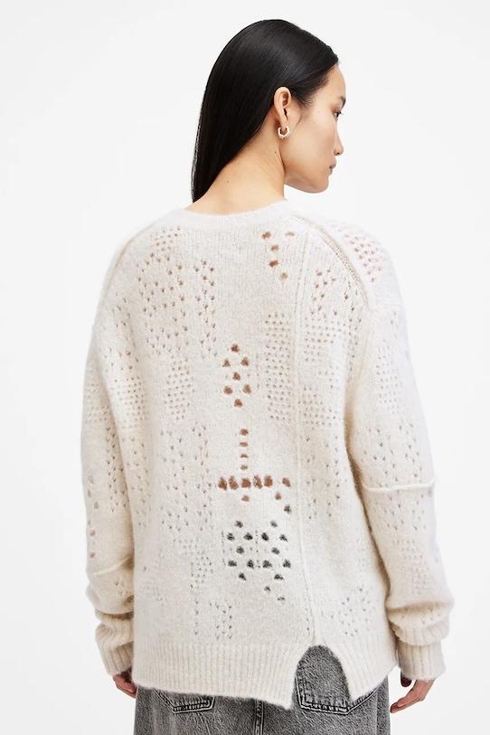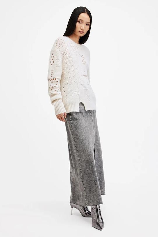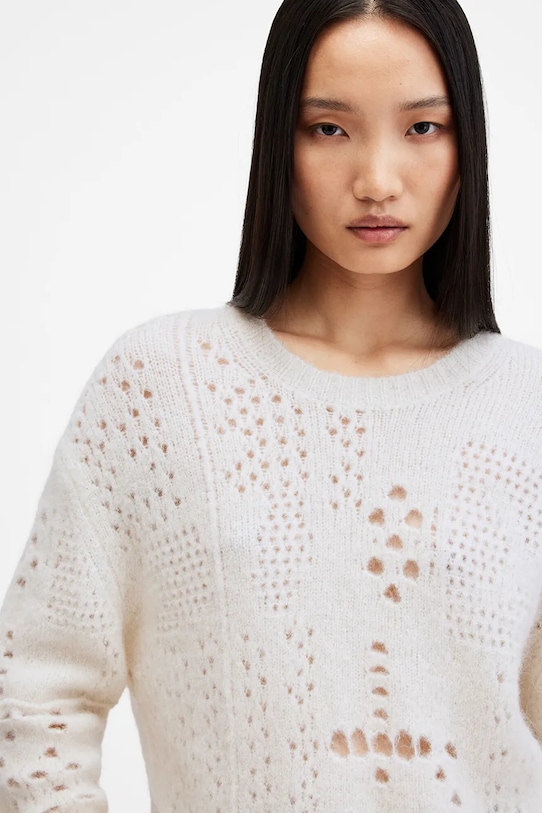 Свитер из коллекции AllSaints. Этот свитер с круглым вырезом выполнен из шерстяного трикотажа. Высокие терморегулирующие свойства шерсти помогают согреться в холод и охладиться в жару. - Этот продукт сертифицирован по стандарту ответственного производства шерсти (RWS). Материал содержит шерсть, полученную с ферм, имеющих независимую сертификацию на соответствие требованиям к благополучию животных и землепользованию. - Обычная посадка. - Классический круглый вырез. - Заниженная линия плеча. - Длинный рукав. - Рукава и нижний край отделаны удобными эластичными манжетами. - Плотная, эластичная трикотажная ткань.