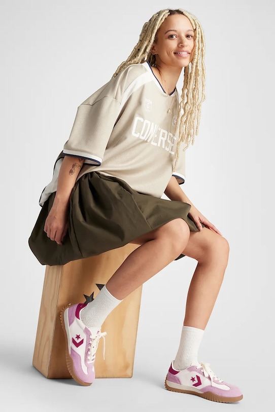Кеды из коллекции Converse. Изготовлены из комбинации текстиля, натуральной кожи и замши. Они оснащены слегка гибкой резиновой подошвой, которая прочна и устойчива к повреждениям. - Круглый, жёсткий носок. - Усиленный задник обеспечивает отличную поддержку лодыжки и пятки. - Классическая шнуровка позволяет индивидуально подогнать обувь по ноге. - Резиновая подошва прочная и устойчивая к повреждениям. - Мягкая подкладка из текстильного материала предотвращает раздражение и обеспечивает высокий комфорт при ношении. - Технология Memory Foam — это мягкая и инновационная вставка, которая идеально адаптируется к телу.