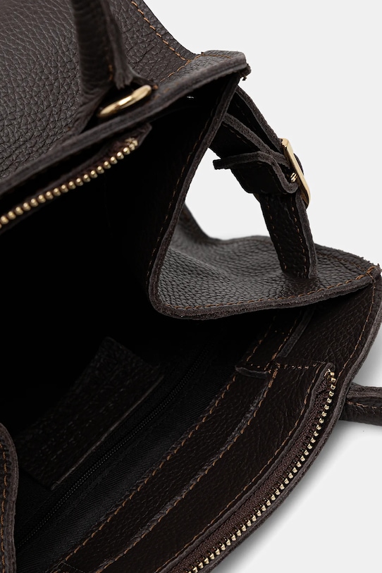Небольшая сумочка из коллекции Answear LAB. Модель на молнии из натуральной кожи. - Входящий в комплект тканевый чехол защищает изделие от пыли. - Отделение на молнии. - Имеет ручки и съемный регулируемый ремень. - Внутренний карман на молнии для удобного и безопасного хранения телефона и других мелких предметов. - Модель оснащена металлическими ножками, защищающими дно сумки. - Не подходит для формата А4. - Модель на подкладке. - Минимальная длина ремешка: 73 см. - Максимальная длина ремня: 132 см. - Длина ручки: 30 см. - Глубина: 16 см. - Высота: 18 см. - Ширина у основания: 26 см.