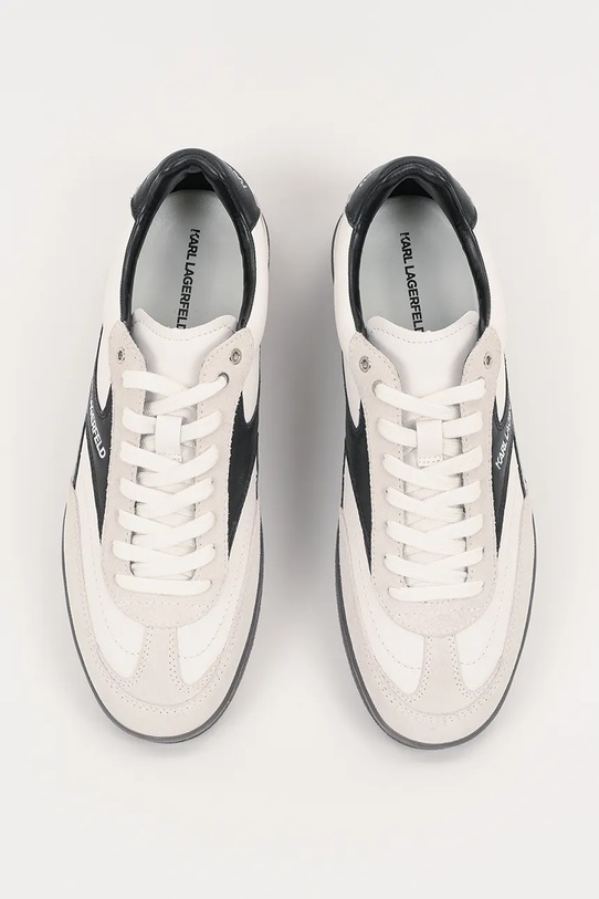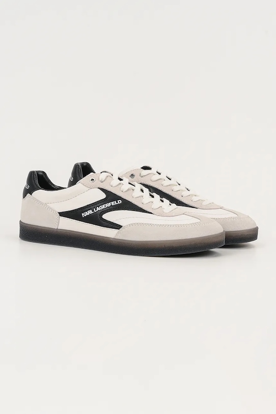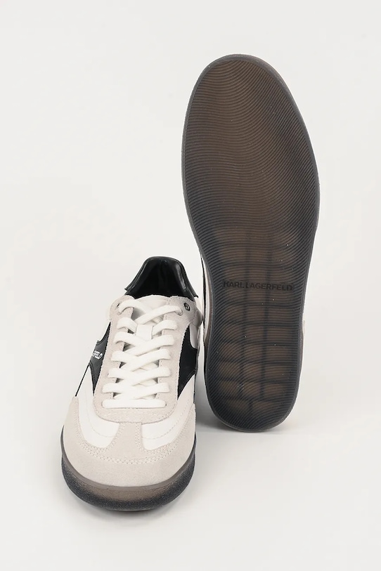Кроссовки из коллекции Karl Lagerfeld. Изготовлены из комбинации кожи наппа и замши, имеют слегка гибкую резиновую подошву, прочную и устойчивую к истиранию. - Круглый, жёсткий носок. - Внутренняя часть выполнена из биовег-материала Musika, который является экологичной альтернативой натуральной коже и содержит сырье биологического происхождения. - Усиленный задник обеспечивает отличную поддержку лодыжки и пятки. - Плоские шнурки устраняют давление на подъем стопы, обеспечивая хорошую посадку и комфорт. - Резиновая подошва прочная и устойчивая к повреждениям. - Рельефный логотип бренда. - Контрастный задник.