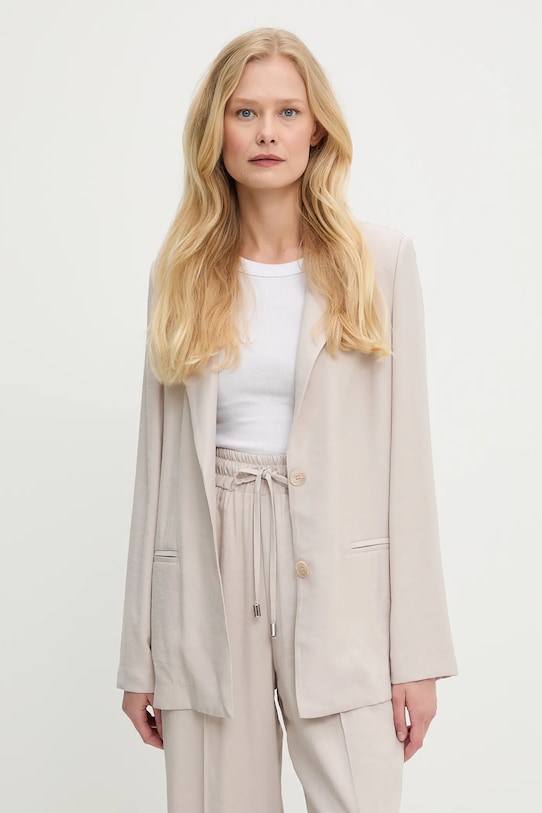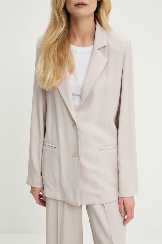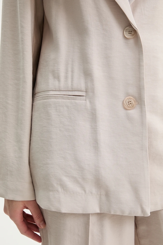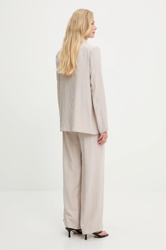 Куртка и брюки из коллекции Answear.LAB. Модель выполнена из тонкой, неэластичной ткани, исключительно комфортной и дышащей. - Свободный крой, обеспечивающий полную свободу движений. - Удобная застежка на кнопки позволяет легко надевать и снимать. - Модель без подкладки. - В плечах вшиты подкладки. - Эластичный пояс. - Два накладных кармана спереди. - Длина: 67 см. - Ширина под мышками: 46 см. - Ширина талии: 30 см. - Ширина бедер: 41 см. - Высота талии: 31 см. - Ширина штанины внизу: 30 см. - Ширина штанины: 27 см. - Длина штанины: 108 см. - Размеры указаны для размера: S.