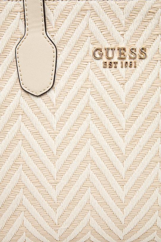 Большая сумка-шоппер из коллекции Guess. Модель на молнии, выполнена из текстильного материала. - Отделение на молнии. - Имеет два отделения. - Модель оснащена металлическими ножками, защищающими дно сумки. - Три внутренних кармана: один на молнии, два накладных. - Карман на молнии на задней стороне позволяет безопасно хранить телефон или другие мелкие предметы. - Имеет ручки и съемный регулируемый ремень. - Вмещает формат А4. - Длина ручки: 41 см. - Минимальная длина ремешка: 94 см. - Максимальная длина ремня: 115 см. - Глубина: 12 см. - Высота: 26 см. - Ширина у основания: 34 см.