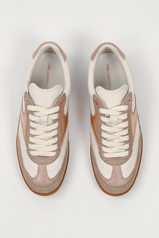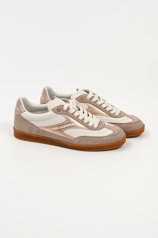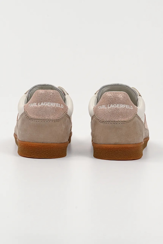 Кроссовки из коллекции Karl Lagerfeld. Изготовлены из комбинации натуральной кожи и замши, имеют гибкую резиновую подошву, прочную и устойчивую к повреждениям. - Круглый, жёсткий носок. - Внутренняя часть выполнена из биовег-материала Musika, который является экологичной альтернативой натуральной коже и содержит сырье биологического происхождения. - Усиленный задник обеспечивает отличную поддержку лодыжки и пятки. - Плоские шнурки устраняют давление на подъем стопы, обеспечивая хорошую посадку и комфорт. - Контрастный задник. - Рельефный логотип сверху. - Резиновая подошва прочная и устойчивая к повреждениям.