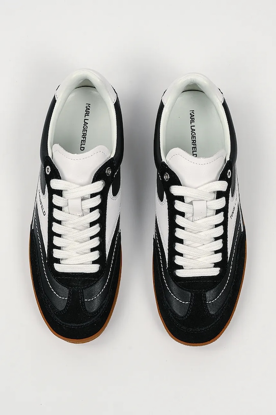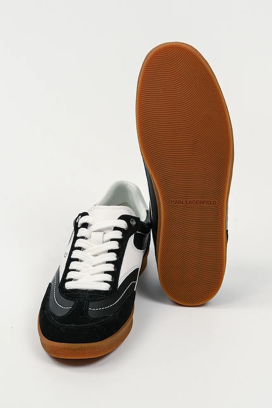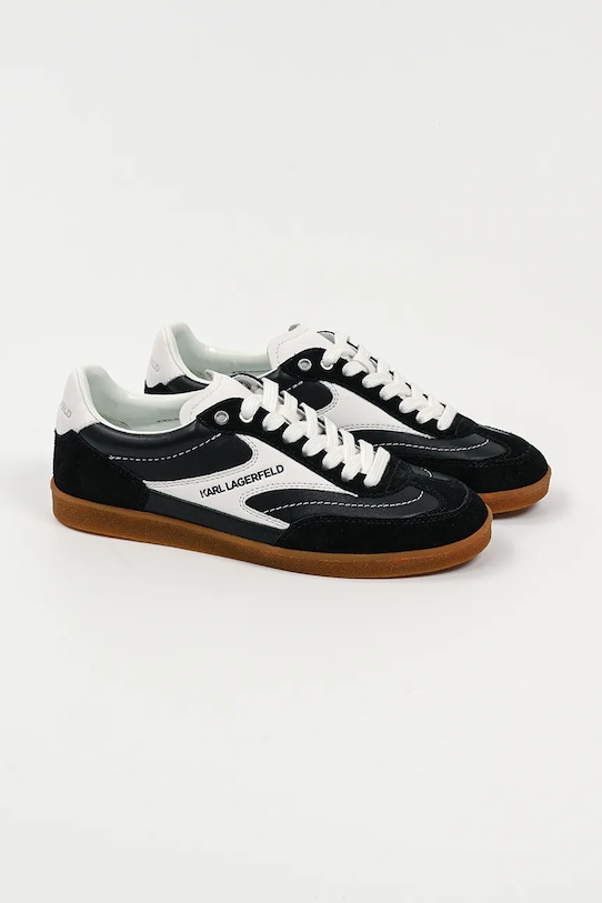 Кроссовки из коллекции Karl Lagerfeld. Изготовлены из комбинации натуральной кожи и замши, имеют гибкую резиновую подошву, прочную и устойчивую к повреждениям. - Круглый, жёсткий носок. - Внутренняя часть выполнена из биовег-материала Musika, который является экологичной альтернативой натуральной коже и содержит сырье биологического происхождения. - Усиленный задник обеспечивает отличную поддержку лодыжки и пятки. - Плоские шнурки устраняют давление на подъем стопы, обеспечивая хорошую посадку и комфорт. - Контрастный задник. - Рельефный логотип сверху. - Резиновая подошва прочная и устойчивая к повреждениям.