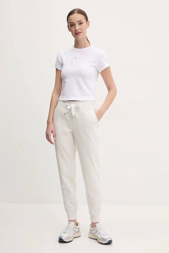 Эти спортивные брюки из коллекции Dkny изготовлены из тонкой эластичной ткани с высоким содержанием хлопка. - Брюки слегка приталенные на бедрах. - Плотно прилегающие, зауженные к низу штанины. - Ножки отделаны удобными эластичными манжетами. - Эластичный пояс и дополнительная регулировка ширины с помощью шнурков для предотвращения сползания во время движения. - Два боковых накладных кармана. - Ширина талии: 38 см. - Ширина бедер: 52 см. - Высота талии: 29 см. - Ширина штанины внизу: 12 см. - Ширина штанины: 30 см. - Длина внешней части штанины: 98 см. - Размеры указаны для размера: S.