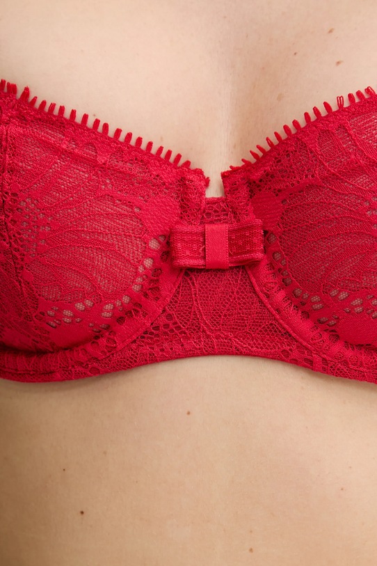 Классический бюстгальтер из коллекции Chantelle. Изготовлен из кружевного материала с полиамидом, обеспечивающим повышенную прочность. - Сертификация Oeko-Tex Standard 100 гарантирует, что при производстве изделия используются экологически чистые и нетоксичные материалы и красители. - Мягкая чашка, укрепленная косточками. - Модель с несъемными бретелями. - Регулируемые бретели обеспечивают оптимальную поддержку груди и позволяют индивидуально подогнать по фигуре, не раздражая кожу на плечах. - Крепление осуществляется двойными четырехпозиционными крючками. - Дополнительный слой материала в виде подкладки спереди.