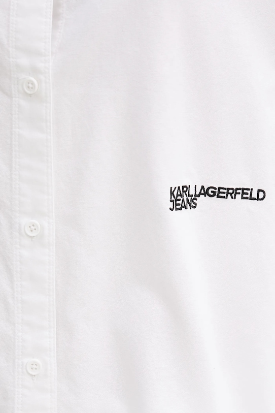 Эта рубашка из коллекции Karl Lagerfeld Jeans выполнена из тонкой, неэластичной ткани. Модель выполнена из исключительно комфортного хлопкового материала. - Свободный крой, обеспечивающий полную свободу движений. - Удобная застежка на кнопки позволяет легко надевать и снимать. - Модель с мягким воротником. - Длинный рукав. - Крой рукава со спущенной линией плеча не ограничивает подвижность. - Рукава с манжетами на пуговицах. - Плоские швы защищают кожу от ссадин и раздражений и обеспечивают высокий уровень комфорта. - Длина: 78 см. - Ширина под мышками: 58 см. - Размеры указаны для размера: S.