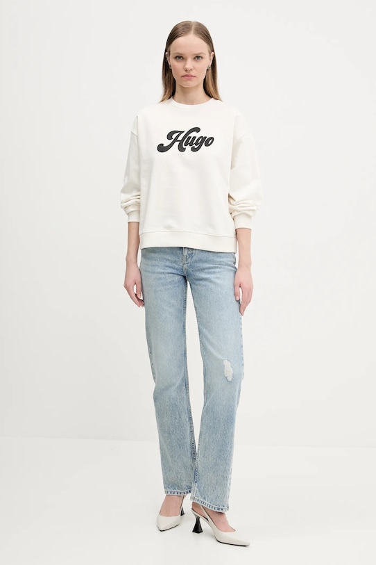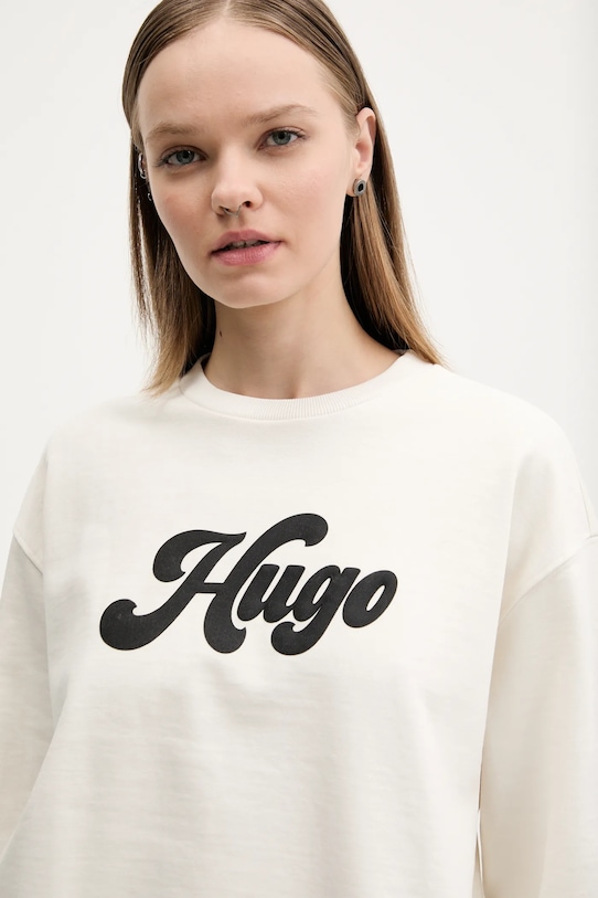 Эта толстовка из коллекции HUGO выполнена из слегка эластичного трикотажа. Модель выполнена из исключительно комфортного материала с высоким содержанием хлопка. - Изделия линейки WE ACT не менее чем на 60% изготавливаются из материалов, полученных более экологичным способом. - Непринужденный стиль. - Классический круглый вырез. - Рукава и низ изделия отделаны удобными эластичными манжетами. - Крой рукава со спущенной линией плеча не ограничивает подвижность. - Модель с аппликацией. - Длина рукава (от горловины): 77 см. - Длина: 57 см. - Ширина под мышками: 64 см. - Размеры указаны для размера: S.