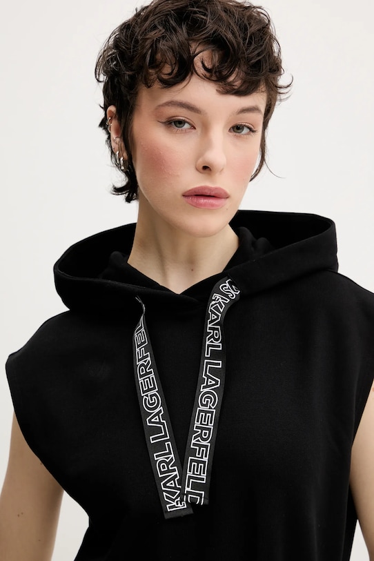 Это платье из коллекции Karl Lagerfeld Jeans выполнено из тонкого, эластичного трикотажа. Эта модель выполнена из исключительно комфортного и дышащего материала, идеально подходящего для теплого времени года. - Органический хлопок выращивается без использования вредных химикатов, химических пестицидов и искусственных удобрений. - Приталенный крой, подчеркивающий силуэт. - Встроенный капюшон обеспечивает дополнительное тепло и защиту при необходимости. - Узкая резинка на талии. - Дополнительный слой материала в виде подкладки. - Длина: 92 см. - Ширина под мышками: 54 см. - Размеры указаны для размера: S.