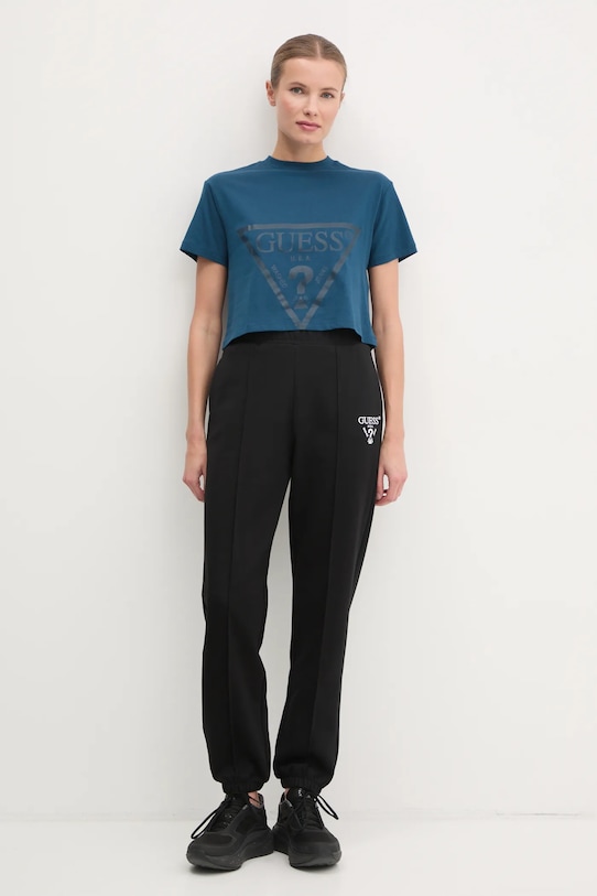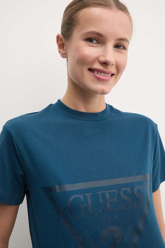 Эта футболка из коллекции Guess выполнена из принтованного трикотажа. Она изготовлена из исключительно комфортного хлопкового материала. - Этот продукт изготовлен из сертифицированного органического хлопка, который выращен и собран из растений, не содержащих ГМО, без использования химических удобрений и пестицидов. - Свободный крой, обеспечивающий полную свободу движений. - Короткий рукав. - Крой рукава со спущенной линией плеча не ограничивает подвижность. - Классический круглый вырез. - Тонкий, эластичный трикотаж. - Длина: 48 см. - Ширина под мышками: 48 см. - Размеры указаны для размера: S.