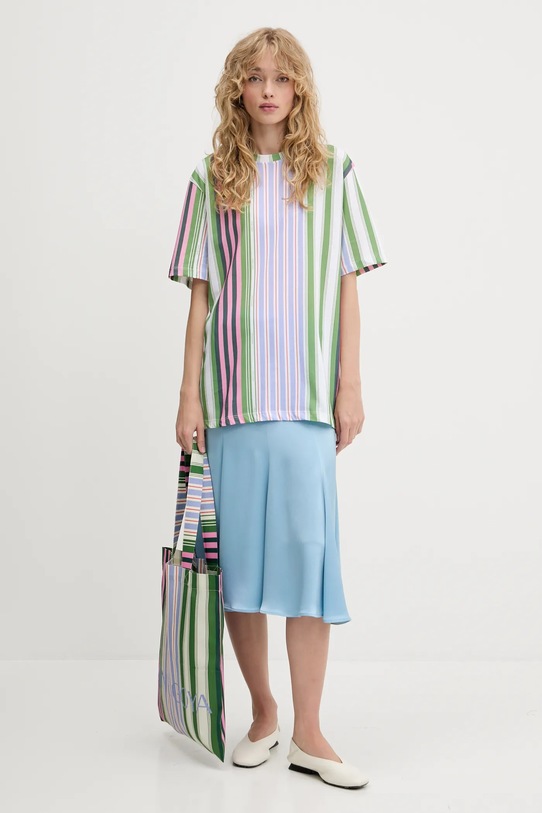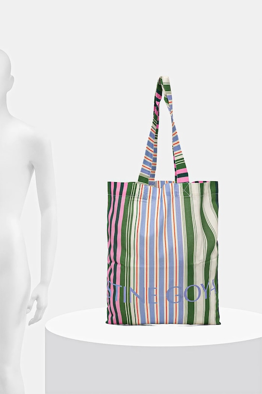 Большая сумка-тоут из коллекции Stine Goya. Эта модель с открытым верхом выполнена из текстиля. Лёгкая и удобная, идеально подходит для повседневной носки. - В состав продукта входят волокна органического хлопка, выращенного без использования вредных химикатов, химических пестицидов и искусственных удобрений. - Расстегивающееся отделение обеспечивает быстрый доступ к содержимому. - Модель не имеет внутренних карманов. - Сумка для ношения в руке или на плече. - Длинные ручки. - Вмещает формат А4. - Модель без подкладки. - Длина ручки: 65 см. - Высота: 45,5 см. - Ширина у основания: 41,5 см.