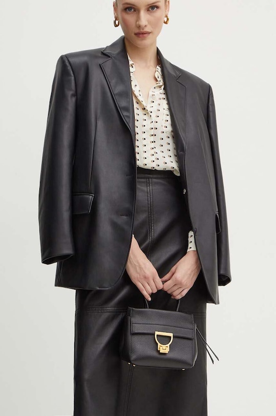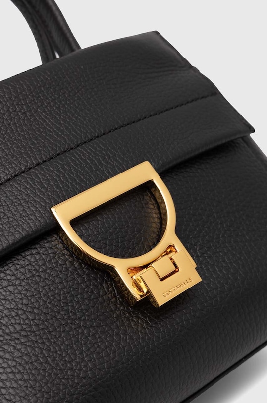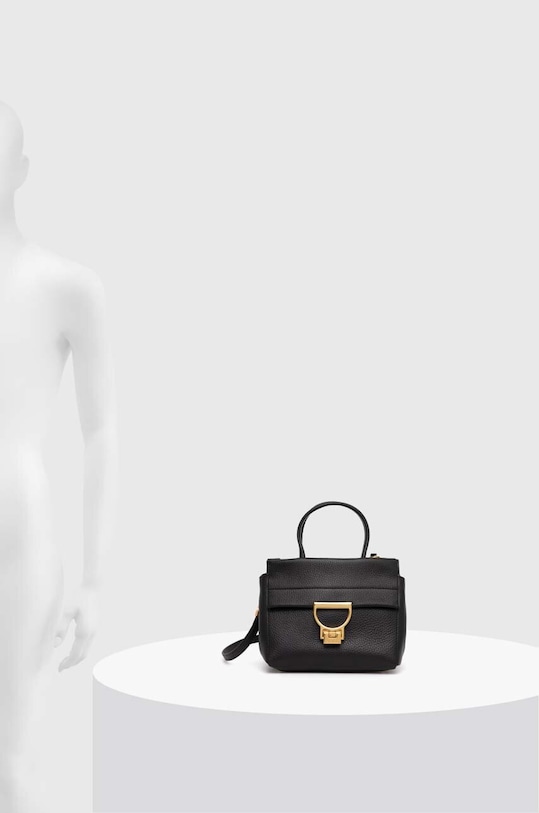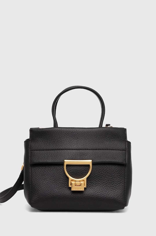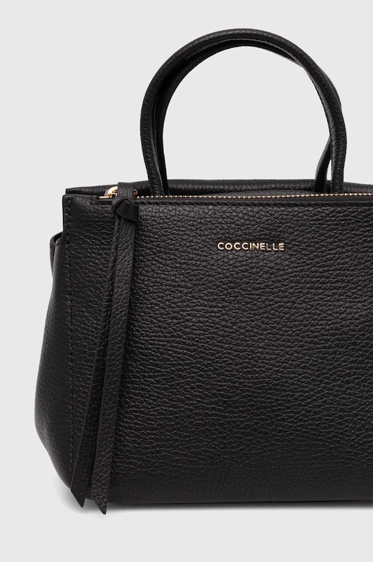 Небольшая сумочка из коллекции Coccinelle. Модель на молнии, выполнена из натуральной кожи. - Имеет ручки и съемный регулируемый ремень. - Имеет два отделения: одно застегивается на молнию, другое на магнит. - Передний карман на кнопке позволяет легко и безопасно хранить телефон или другие мелкие предметы. - Внутренний накладной карман. - Не подходит для формата А4. - Входящий в комплект тканевый чехол защищает изделие от пыли. - Минимальная длина ремня: 118 см. - Максимальная длина ремня: 143 см. - Длина ручки: 25 см. - Глубина: 12 см. - Высота: 16 см. - Ширина у основания: 19 см.