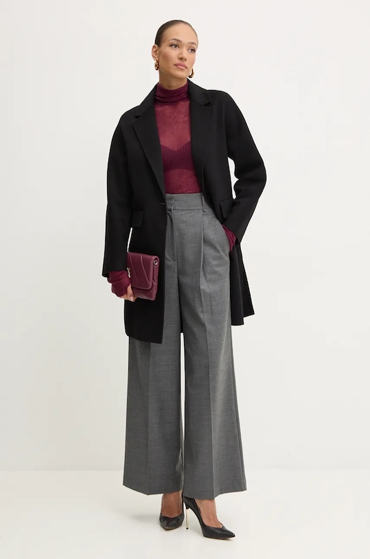 Пальто из коллекции Patrizia Pepe. Это пальто без подкладки выполнено из шерсти. - Простой дизайн. - Неутепленная модель без подкладки. - Модель с карманами, декорированными клапанами. - Застежка на пуговицы. - Классические лацканы. - Длина рукава (от воротника): 71 см. - Длина: 95 см. - Ширина под мышками: 49 см. - Размеры указаны для размера: 36.