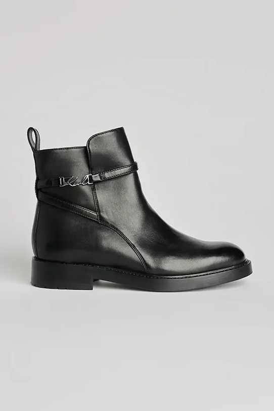 Эти ботинки из коллекции Karl Lagerfeld изготовлены из натуральной кожи. Усиленный верх обеспечивает устойчивость. - Круглый нос. - Резиновая подошва прочная и устойчивая к повреждениям. - Удобная застежка-молния сбоку позволяет легко надевать и снимать. - Жесткий верх обеспечивает устойчивость. - Петля сзади облегчает надевание и снятие обуви. - Текстильная подкладка предотвращает раздражение и обеспечивает высокий комфорт при ношении. - Кожаная стелька комфортна для стопы и предотвращает натирание, потертости и появление неприятного запаха. - Декоративные детали. - Модель на плоской подошве.