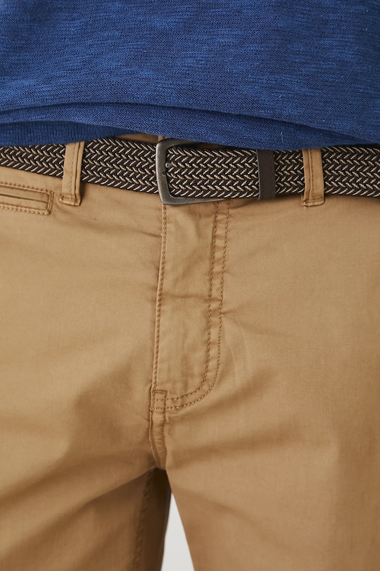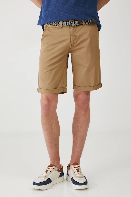 Шорты из коллекции Medicine. Изготовлены из гладкой ткани. - Материал с сертификатом OEKO-TEX Standard 100 гарантирует, что текстильные изделия, на которых он нанесен, не содержат вредных и потенциально опасных для человека и окружающей среды веществ. - Приталенный крой. - Модель со стандартной талией, застежкой на пуговицы и молнию. - Ремешок в комплекте. - Накладные карманы. - Контрастная строчка. - Гладкая ткань. - Ширина талии: 42 см. - Ширина бедер: 54 см. - Высота талии: 26 см. - Ширина штанины внизу: 26 см. - Длина по внутреннему шву: 25 см. - Размеры указаны для размера: M.