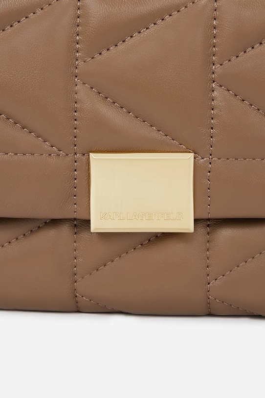 Небольшая сумочка из коллекции Karl Lagerfeld. Эта модель на молнии выполнена из комбинации натуральной и искусственной кожи. В комплект входит тканевый пыльник для защиты изделия от пыли. - Модели линейки Karl Cares изготовлены из материалов, произведенных в ходе устойчивого, экологически чистого процесса производства. - Клапан застегивается на магнит. - Модель на подкладке. - Внутренний накладной карман для удобного и безопасного хранения мелких предметов. - Имеет ручку и съемный регулируемый ремень. - Глубина: 9 см. - Не подходит для формата А4. - Высота: 18 см. - Ширина у основания: 26 см.