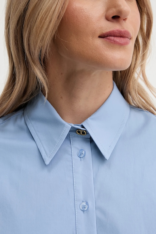 Эта рубашка из коллекции Twinset выполнена из тонкой, эластичной ткани. Модель выполнена из исключительно комфортного материала с высоким содержанием хлопка. - Свободный крой со спущенными плечами. - Застежка на пуговицы. - Гладкая ткань. - Длина рукава (от воротника): 74 см. - Длина: 72 см. - Ширина под мышками: 60 см. - Размеры указаны для размера: 36.