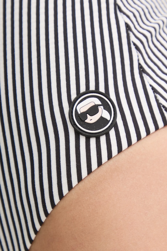 Слитный купальник из коллекции Карла Лагерфельда. Изготовлен из узорчатой ткани. - Мягкая чашка без косточек и других жестких элементов обеспечивает полный комфорт использования. - Дополнительный слой материала в виде подкладки увеличивает покрытие и обеспечивает дополнительный комфорт во время активности. - Регулируемые, несъемные лямки. - Тонкий, эластичный трикотаж.