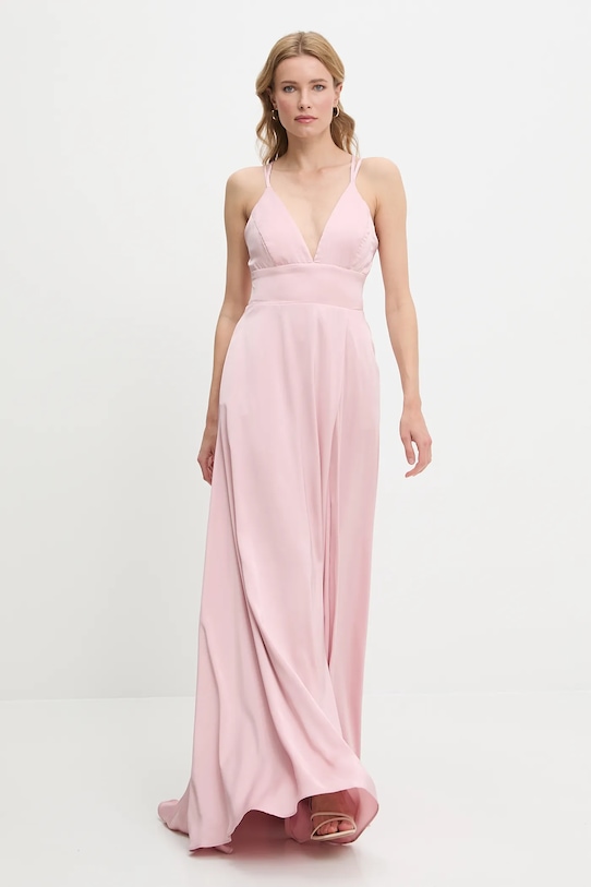 Платье из коллекции Answear.LAB, выполненное из тонкой, неэластичной ткани. Модель выполнена из нежного, воздушного материала, идеально подходящего для теплого времени года. - Приталенный верх и расклешенный низ. - Несъемные подушечки обеспечивают легкую поддержку и дополнительное покрытие в области груди. - Застежка-молния сзади. - Модель с открытой спиной и декоративной шнуровкой. - Модель на подкладке. - Два боковых накладных кармана. - Модель выполнена из материала атласного переплетения. - Впечатляющий крой. - Длина: 155 см. - Ширина под мышками: 41 см. - Указаны размеры: S/M.