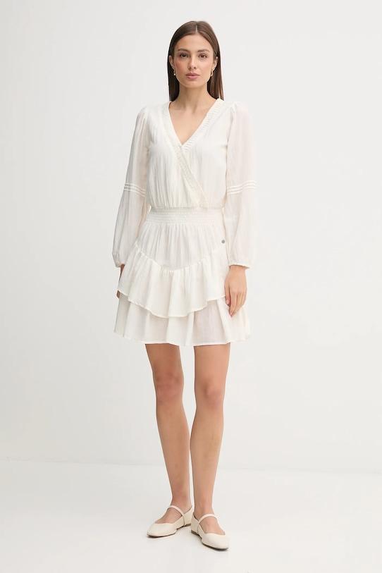 Это платье из коллекции Pepe Jeans выполнено из гладкой ткани. Модель выполнена из дышащего материала с высоким содержанием хлопка. - Расклешенный крой. - Дополнительный слой материала в виде подкладки. - Декоративный, заостренный вырез. - Отложной воротник с застежкой на кнопку. - Длинные рукава с удобными эластичными манжетами. - Модель с рукавами-буфами. - Широкий эластичный пояс. - Модель с декоративными оборками. - Тонкая, неэластичная ткань. - Длина рукава: 60 см. - Длина: 92 см. - Ширина под мышками: 46 см. - Ширина талии: 32 см. - Размеры указаны для размера: S.