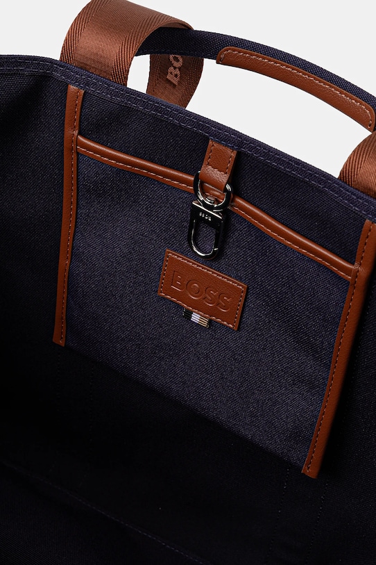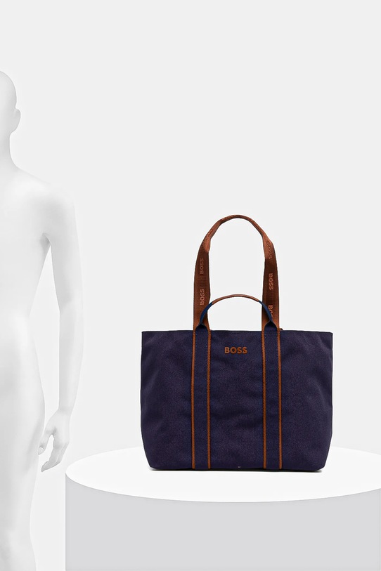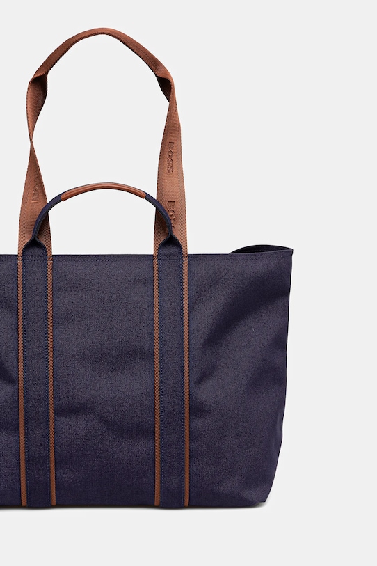 Большая сумка-тоут из коллекции BOSS. Эта модель на молнии выполнена из текстиля. Лёгкая и удобная, идеально подходит для повседневной носки. - Изделия линейки BETTER BOSS не менее чем на 60% изготовлены из материалов, полученных более экологичным способом. - Отделение застегивается на карабин. - Внутренний накладной карман для удобного и безопасного хранения мелких предметов. - Сумка для ношения в руке или на плече. - Длинные и короткие ручки. - Вмещает формат А4. - Модель без подкладки. - Длина ручки: 28 см / 62 см. - Глубина: 18 см. - Высота: 31 см. - Ширина у основания: 39 см.