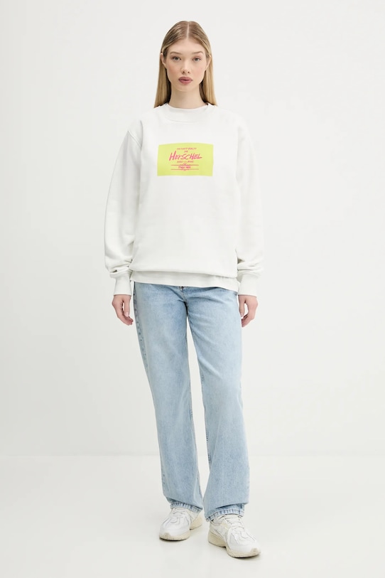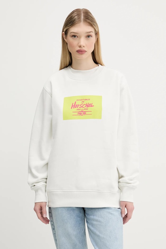 Эта толстовка Herschel изготовлена из эластичного трикотажа. Мягкая внутренняя подкладка обеспечивает оптимальный тепловой комфорт. - Свободный крой, обеспечивающий полную свободу движений. - Круглый ребристый вырез. - Крой рукава со спущенной линией плеча не ограничивает подвижность. - Рукава и низ изделия отделаны манжетами для защиты от неблагоприятных погодных условий. - Мягкая внутренняя отделка обеспечивает высокий комфорт использования и оптимальный тепловой комфорт. - Печать логотипа бренда спереди и сзади. - Длина: 72 см. - Ширина под мышками: 64 см. - Размеры указаны для размера: M.