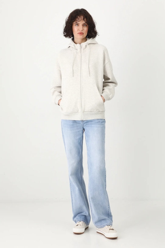 Толстовка с капюшоном из коллекции Medicine. Эта толстовка на молнии выполнена из меланжевого трикотажа. - Материал с сертификатом OEKO-TEX Standard 100 гарантирует, что текстильные изделия, на которых он нанесен, не содержат вредных и потенциально опасных для человека и окружающей среды веществ. - Большой размер. - Длинный рукав. - Заниженная линия плеча. - Капюшон с завязками. - Застежка-молния. - Два боковых накладных кармана. - Отделка ребер. - Меланжевый трикотаж. - Длина рукава (от капюшона): 73 см. - Длина: 66 см. - Ширина груди: 57 см. - Размеры указаны для размера: S.