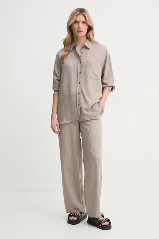 Эти брюки из коллекции American Vintage сшиты из дышащего материала с высоким содержанием вискозы, который имеет узорчатый рисунок. - Брюки свободные в области бедер и ягодиц. - Прямая нога полной длины. - Высокая талия с резинкой предотвращает скольжение во время движения. - Регулировка ширины талии с помощью шнурков. - Два боковых накладных кармана. - Тонкая, неэластичная ткань. - Ширина талии: 30 см. - Ширина бедер: 50 см. - Высота талии: 29,5 см. - Ширина штанины снизу: 25 см. - Ширина штанины: 32 см. - Длина внешней части штанины: 103 см. - Размеры указаны для размера: S.