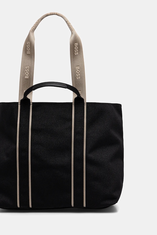 Большая сумка-тоут из коллекции BOSS. Эта модель на молнии выполнена из текстиля. Лёгкая и удобная, идеально подходит для повседневной носки. - Изделия линейки BETTER BOSS не менее чем на 60% изготовлены из материалов, полученных более экологичным способом. - Отделение застегивается на карабин. - Внутренний накладной карман для удобного и безопасного хранения мелких предметов. - Сумка для ношения в руке или на плече. - Длинные и короткие ручки. - Вмещает формат А4. - Модель без подкладки. - Длина ручки: 28 см / 62 см. - Глубина: 18 см. - Высота: 31 см. - Ширина у основания: 39 см.