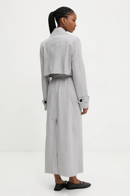 Тренч из коллекции Answear.LAB. Эта модель без подкладки выполнена из потертого денима. Он выполнен из исключительно комфортной, дышащей хлопковой ткани. - Простой дизайн, не стесняющий движений. - Дополнительный слой материала в виде подкладки. - Классические лацканы. - Пояс на талии корректирует фигуру и еще больше подчеркивает талию. - В плечах вшиты подкладки. - Два боковых накладных кармана. - Разрез сзади обеспечивает свободу движений и лучшую подачу материала. - Тонкая, слегка эластичная ткань. - Длина: 134 см. - Ширина под мышками: 50 см. - Размеры указаны для размера: S.