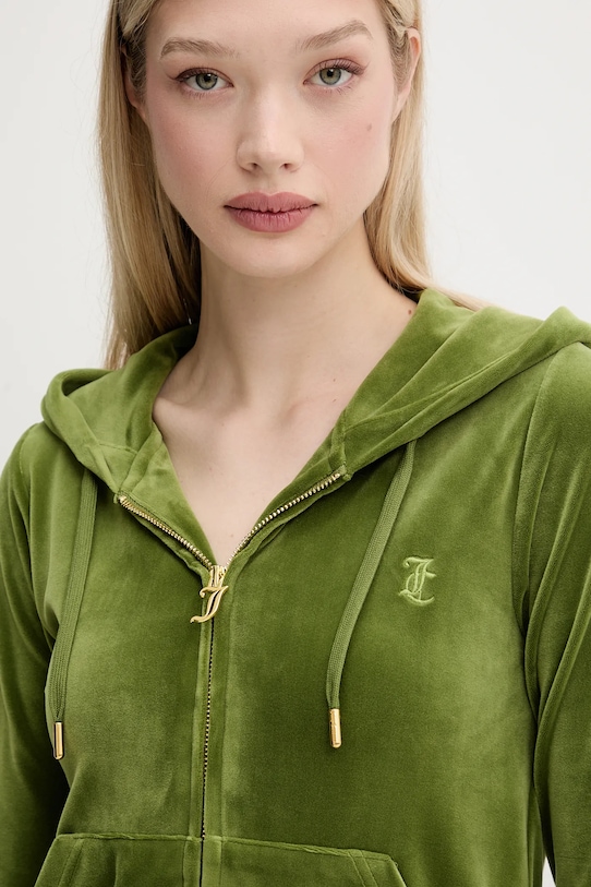 Эта толстовка с капюшоном из коллекции Juicy Couture выполнена из эластичного трикотажного полотна и отличается мягким, приятным на ощупь велюром. - Простой дизайн, не стесняющий движений. - Капюшон с завязками обеспечивает дополнительное тепло и защиту при необходимости. - Длинный рукав. - Рукава и низ изделия отделаны манжетами для защиты от неблагоприятных погодных условий. - Застежка-молния обеспечивает легкую и эффективную вентиляцию. - Два боковых накладных кармана. - Вышитый логотип бренда на груди. - Длина: 57 см. - Ширина под мышками: 42 см. - Размеры указаны для размера: S.