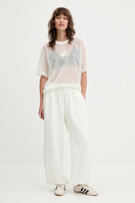 Эти спортивные брюки adidas изготовлены из эластичной ткани, обеспечивающей комфорт и свободу движений. Мягкая подкладка обеспечивает превосходный комфорт. - Высокая талия с эластичным поясом. - Внутренняя регулировка ширины талии с помощью шнурков. - Ножки отделаны узкой эластичной манжетой. - Два боковых накладных кармана. - Мягкая внутренняя отделка повышает комфорт использования. - Ширина талии: 36 см. - Ширина бедер: 57 см. - Высота талии: 33,5 см. - Ширина штанины: 34 см. - Ширина штанины внизу: 15 см. - Длина по внутреннему шву: 73 см. - Размеры указаны для размера: S.