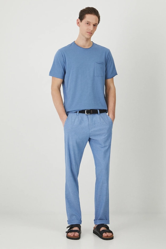 Брюки из коллекции «Медицина». Изготовлены из меланжевой ткани. - Обычная посадка. - Брюки имеют косые карманы - они идеально вписываются в стиль smart casual. - Модель со стандартной талией, застежкой на пуговицы и молнию. - Декоративные закладки. - В комплект входит плетеный ремешок. - Меланжевая ткань. - Льняной материал обеспечивает комфорт и воздухопроницаемость. - Ткань саржевого переплетения. - Ширина талии: 44,6 см. - Ширина бедер: 55 см. - Высота талии: 27,1 см. - Ширина штанины внизу: 19,5 см. - Длина по внутреннему шву: 81 см. - Размеры указаны для размера: L.