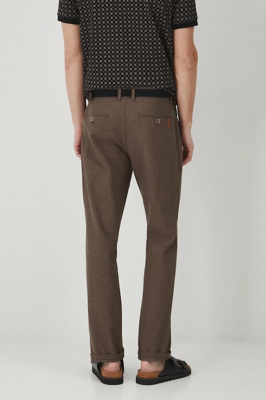 Брюки из коллекции «Медицина». Изготовлены из меланжевой ткани. - Обычная посадка. - Брюки имеют косые карманы - они идеально вписываются в стиль smart casual. - Модель со стандартной талией, застежкой на пуговицы и молнию. - Декоративные закладки. - В комплект входит плетеный ремешок. - Меланжевая ткань. - Льняной материал обеспечивает комфорт и воздухопроницаемость. - Ткань саржевого переплетения. - Ширина талии: 44,6 см. - Ширина бедер: 55 см. - Высота талии: 27,1 см. - Ширина штанины внизу: 19,5 см. - Длина по внутреннему шву: 81 см. - Размеры указаны для размера: L.