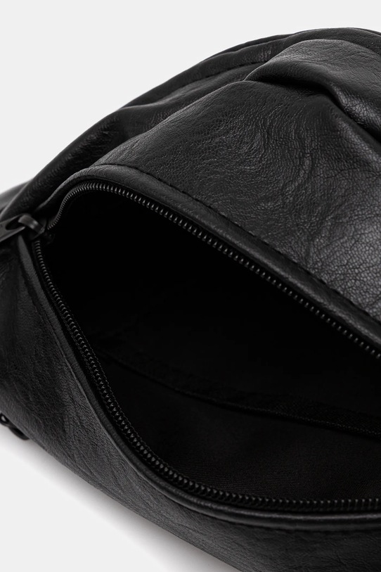 Поясная сумка среднего размера из коллекции Answear.LAB. Застёгивается на пуговицы и изготовлена из экокожи. - Застежка-молния. - Карман на молнии спереди позволяет безопасно хранить телефон и другие мелкие предметы. - Внутренний накладной карман. - Карман на молнии на задней стороне позволяет безопасно хранить мелкие предметы. - Модель на подкладке. - Не подходит для формата А4. - Несъемный регулируемый ремешок позволяет индивидуально подогнать посадку. - Входящий в комплект тканевый чехол защищает изделие от пыли. - Глубина: 10 см. - Высота: 16 см. - Ширина у основания: 24 см.