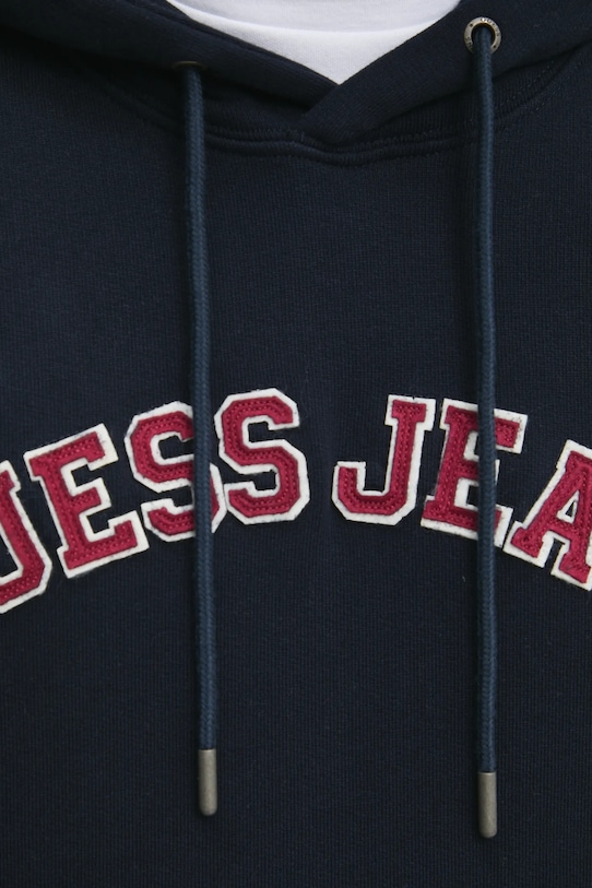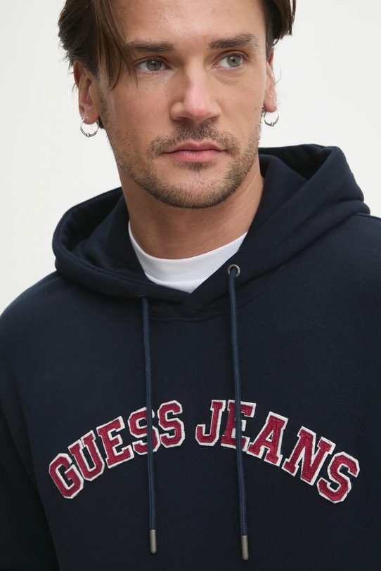 Эта толстовка с капюшоном из коллекции Guess Jeans выполнена из эластичного трикотажа. Модель выполнена из исключительно комфортного хлопкового материала. - Модель частично изготовлена из волокон, произведенных с использованием устойчивых производственных процессов, что позволяет снизить их воздействие на окружающую среду. - Обычная посадка. - Практичный вставной карман-кенгуру спереди. - Рукава и низ изделия отделаны манжетами для защиты от неблагоприятных погодных условий. - Длина рукава (от капюшона): 78 см. - Длина: 70 см. - Ширина под мышками: 54 см. - Размеры указаны для размера: M.