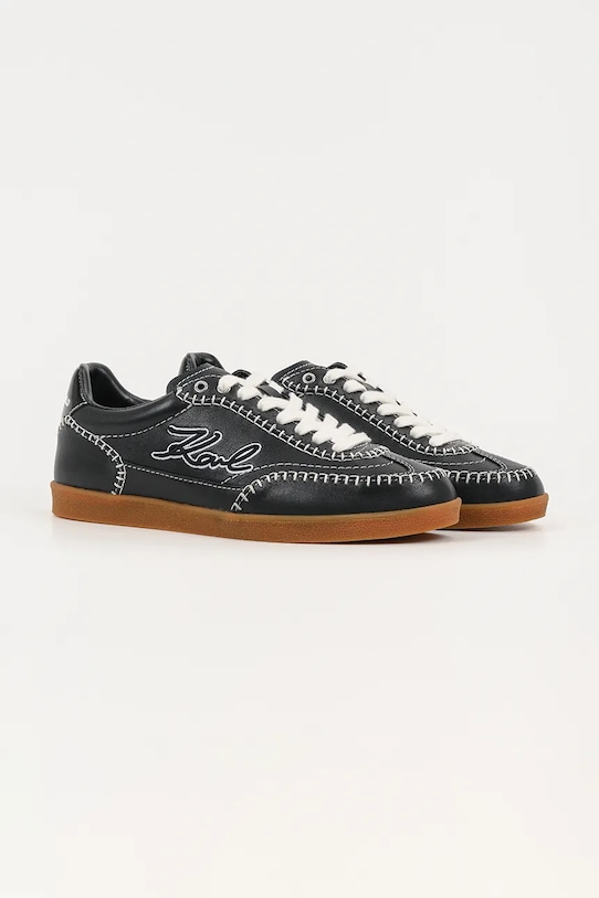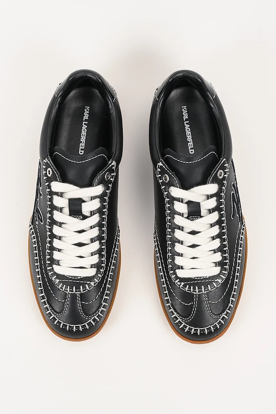 Кроссовки из коллекции Karl Lagerfeld. Изготовлены из натуральной кожи и оснащены слегка гибкой резиновой подошвой, которая прочна и устойчива к повреждениям. - Круглый, жёсткий носок. - Внутренняя часть выполнена из биовег-материала Musika, который является экологичной альтернативой натуральной коже и содержит сырье биологического происхождения. - Усиленный задник обеспечивает отличную поддержку лодыжки и пятки. - Плоские шнурки устраняют давление на подъем стопы, обеспечивая хорошую посадку и комфорт. - Резиновая подошва прочная и устойчивая к повреждениям. - Верхняя часть прошита в тон цвета.