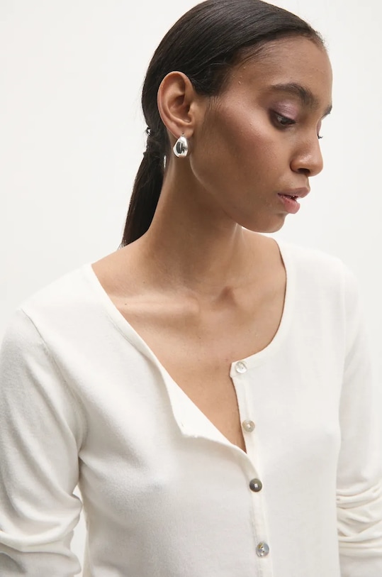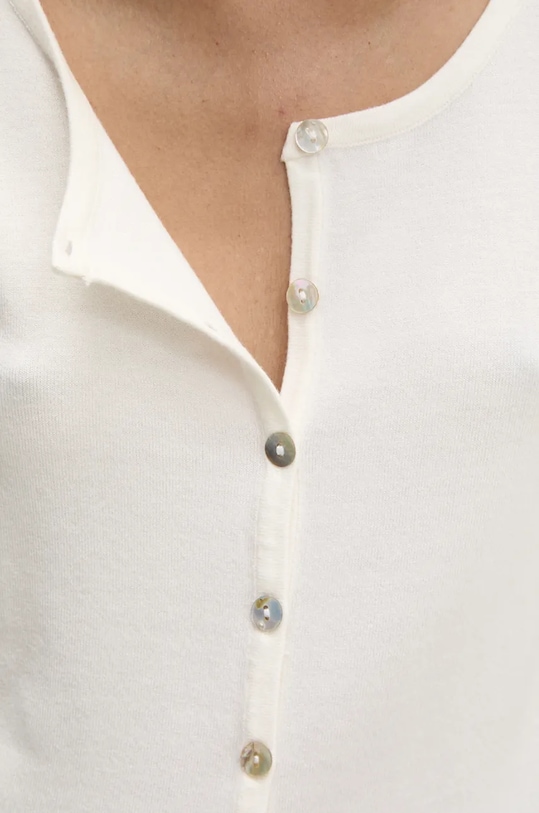 Этот кардиган из коллекции Answear.LAB выполнен из гладкого трикотажа. Он мягкий и приятный на ощупь. - Изготовлено из экологически чистого материала LENZING ECOVERO. LENZING ECOVERO производится из органической целлюлозы и древесной массы, используя на 50% меньше воды, чем популярная вискоза. - Приталенный крой, не стесняющий движений. - Удобная застежка на кнопки позволяет легко надевать и снимать. - Рукава и нижний край отделаны удобными эластичными манжетами. - Тонкий, эластичный трикотаж. - Длина рукава: 57 см. - Длина: 58 см. - Ширина под мышками: 44 см. - Указаны размеры: S/M.