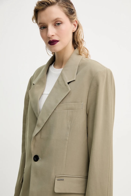 Этот блейзер из коллекции G-Star выполнен из гладкой ткани. Эта модель выполнена из исключительно комфортного и дышащего материала, идеально подходящего для теплого времени года. - Изготовлено из экологически чистого материала LENZING ECOVERO. LENZING ECOVERO производится из органической целлюлозы и древесной массы, используя на 50% меньше воды, чем популярная вискоза. - Данное изделие частично изготовлено из переработанного полиэстера. - Свободный крой, обеспечивающий полную свободу движений. - В плечах вшиты подкладки. - Классические лацканы. - Модель на подкладке. - Застежка на пуговицы.