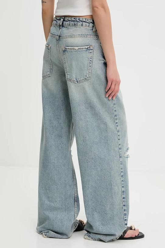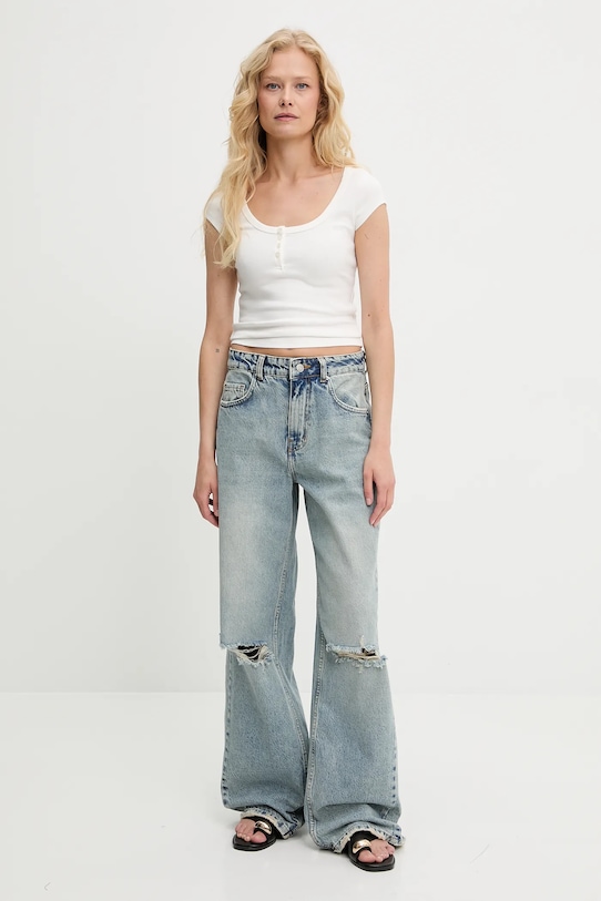 Эти джинсы широкого кроя из коллекции Answear.LAB с высокой талией выполнены из жёсткого денима с потёртостями. Они изготовлены из приятного на ощупь хлопка. - Джинсы, слегка облегающие на бедрах. - Модель с высокой талией, застежкой на пуговицы и молнию. - Широкие штанины. - Три накладных кармана спереди. - Два накладных кармана на ягодицах. - Модель с декоративной бахромой. - Декоративные потертости. - Ширина талии: 37 см. - Ширина бедер: 52 см. - Высота талии: 30 см. - Длина по внутреннему шву: 85 см. - Длина внешнего шва: 112 см. - Размеры указаны для размера: S.